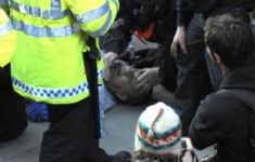 O falecido, Ian Tomlinson, morreu dun ataque cardíaco, mais momentos antes foi empurrado e golpeado pola policía, segundo un vídeo captado por The Guardian.